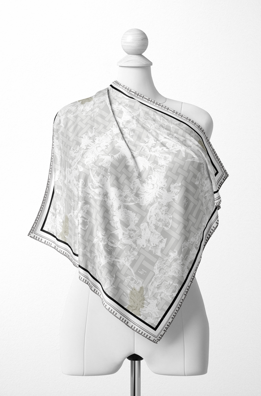 Oriental Blooms Geometric Scarf in Cotton Voile - Grey