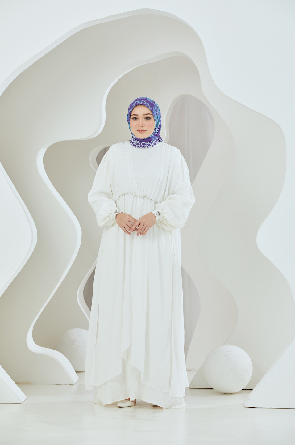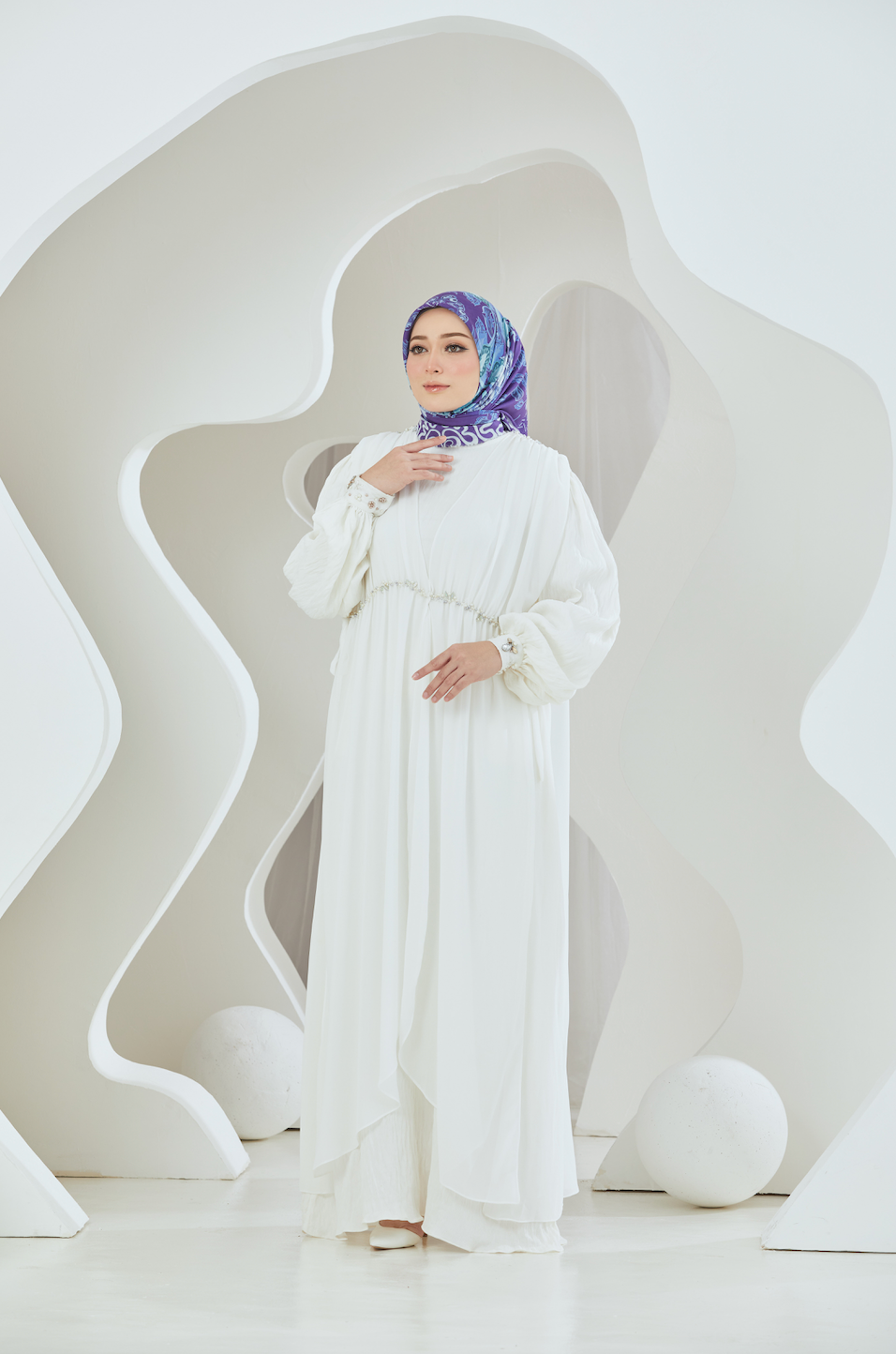 This Crinkled Rayon Dress paired with a Chiffon Maxi Gilet offers a harmonious blend of texture and elegance. The dress features a soft, crinkled rayon fabric that ensures comfort while providing a flattering drape. Complementing this, the sheer chiffon gilet adds a layer of sophistication with its flowing, maxi-length design. This ensemble strikes a perfect balance between casual charm and refined grace, making it suitable for various occasions. Whether styled together or separately, these pieces promise versatility and a chic, timeless appeal, ideal for the contemporary modest wardrobe.