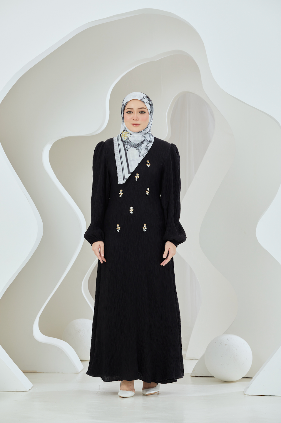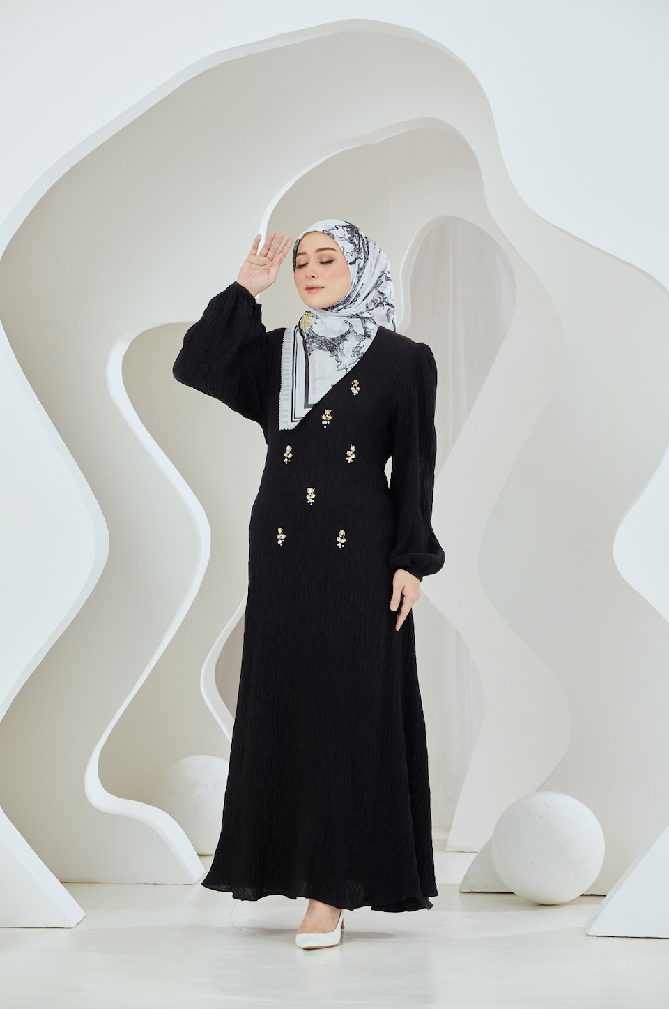 This Crinkled Rayon Embellished Maxi Dress features a luxuriously lightweight fabric with a unique crinkled texture, offering both comfort and style. It's intricately adorned with delicate embellishments that catch the light, adding a touch of elegance. The flowing silhouette gracefully drapes to a maxi length, ensuring a striking presence at any event. With its versatile design, this dress is perfect for both daytime and evening wear, making it a must-have addition to your wardrobe.
