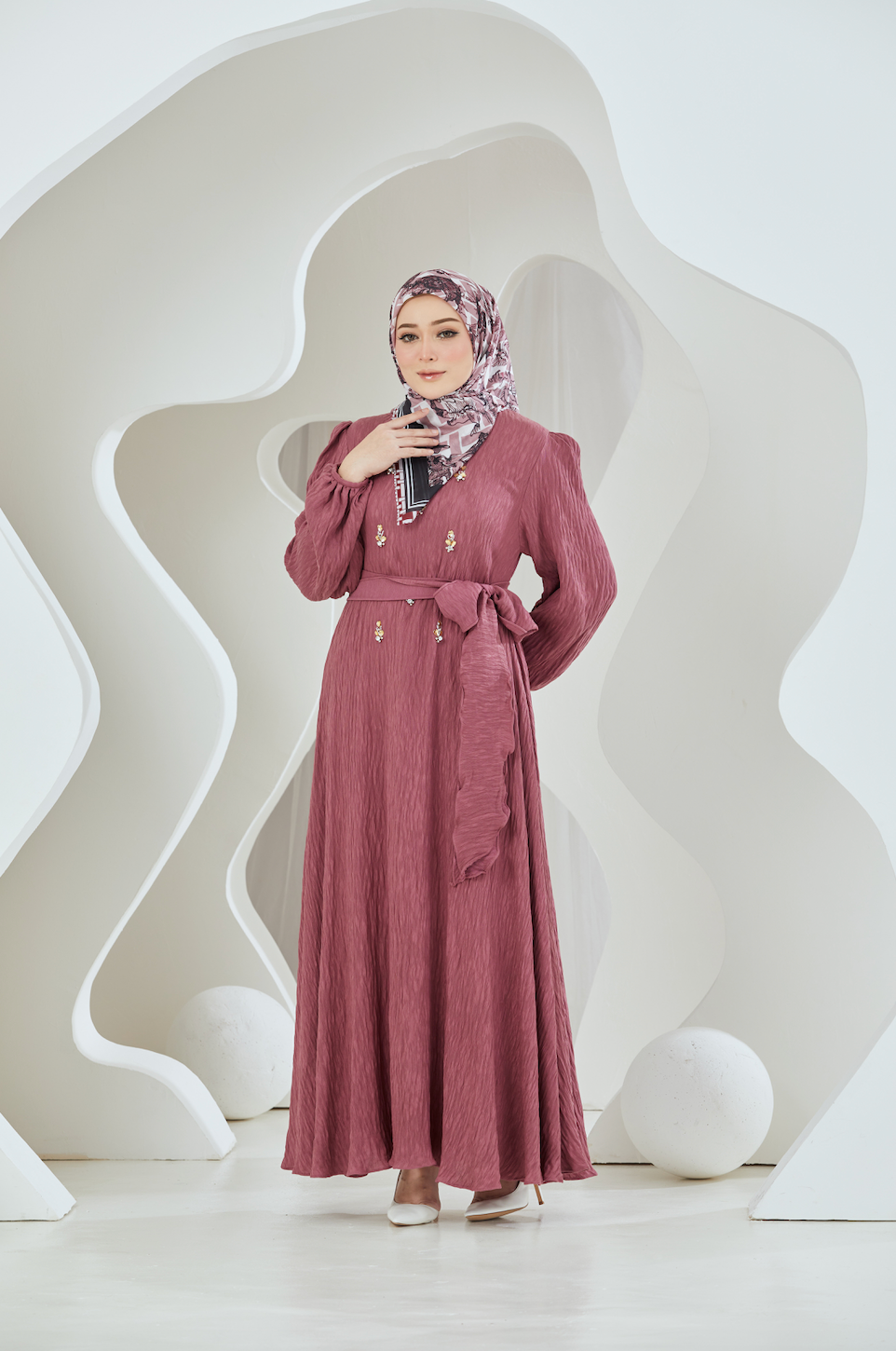 This Crinkled Rayon Embellished Maxi Dress features a luxuriously lightweight fabric with a unique crinkled texture, offering both comfort and style. It's intricately adorned with delicate embellishments that catch the light, adding a touch of elegance. The flowing silhouette gracefully drapes to a maxi length, ensuring a striking presence at any event. With its versatile design, this dress is perfect for both daytime and evening wear, making it a must-have addition to your wardrobe.
