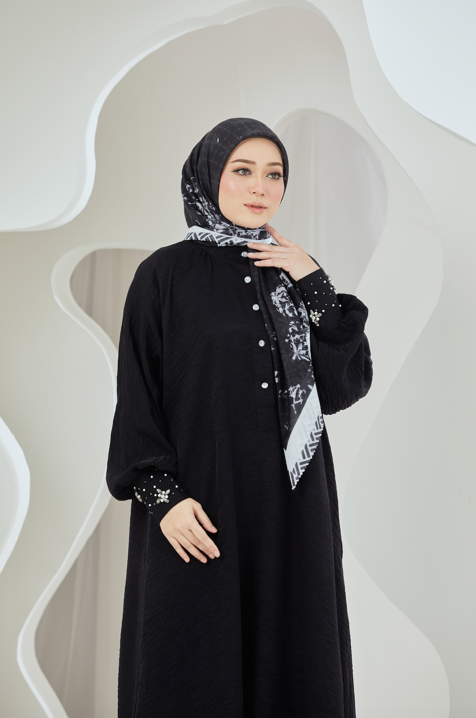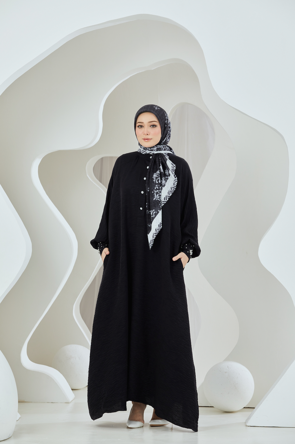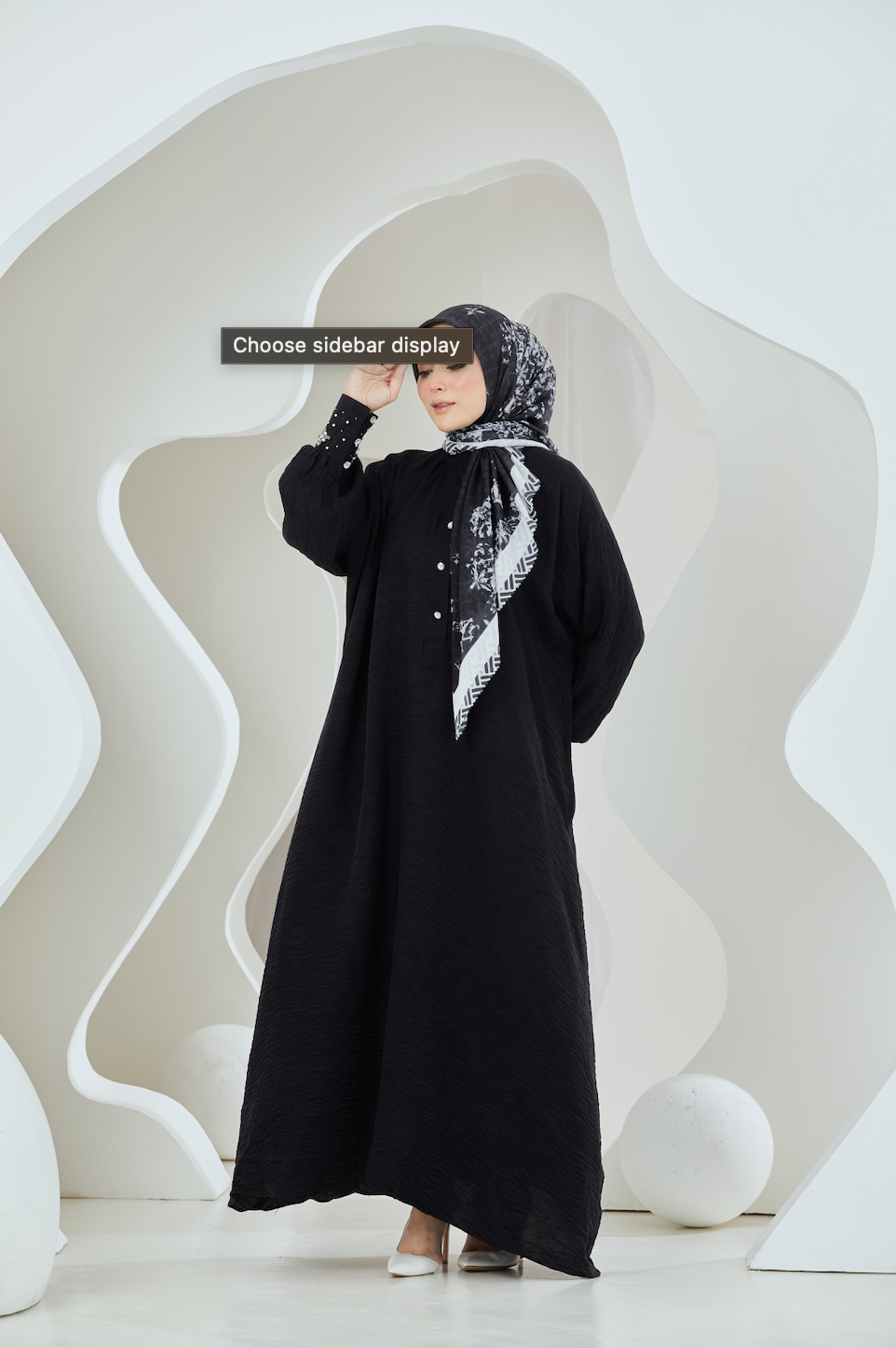 This Duchess Satin Abaya redefines luxury and elegance with its embellished sleeves and a delicate Chiffon Shoulder Sash. Crafted from sumptuous Duchess Satin, the abaya boasts a sleek and lustrous finish, offering an unparalleled touch of sophistication. The sleeves are meticulously adorned with intricate embellishments, adding a sparkle that catches the eye and enhances the garment's luxury appeal. A chiffon shoulder sash drapes elegantly, adding a fluid contrast to the satin's opulence and providing a graceful silhouette. Perfect for formal events, this abaya merges traditional modesty with contemporary elegance, making a statement in refined style.