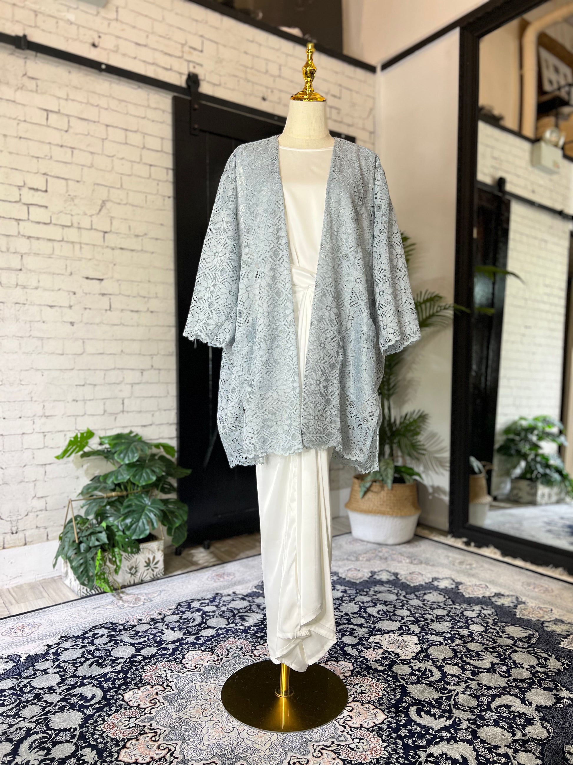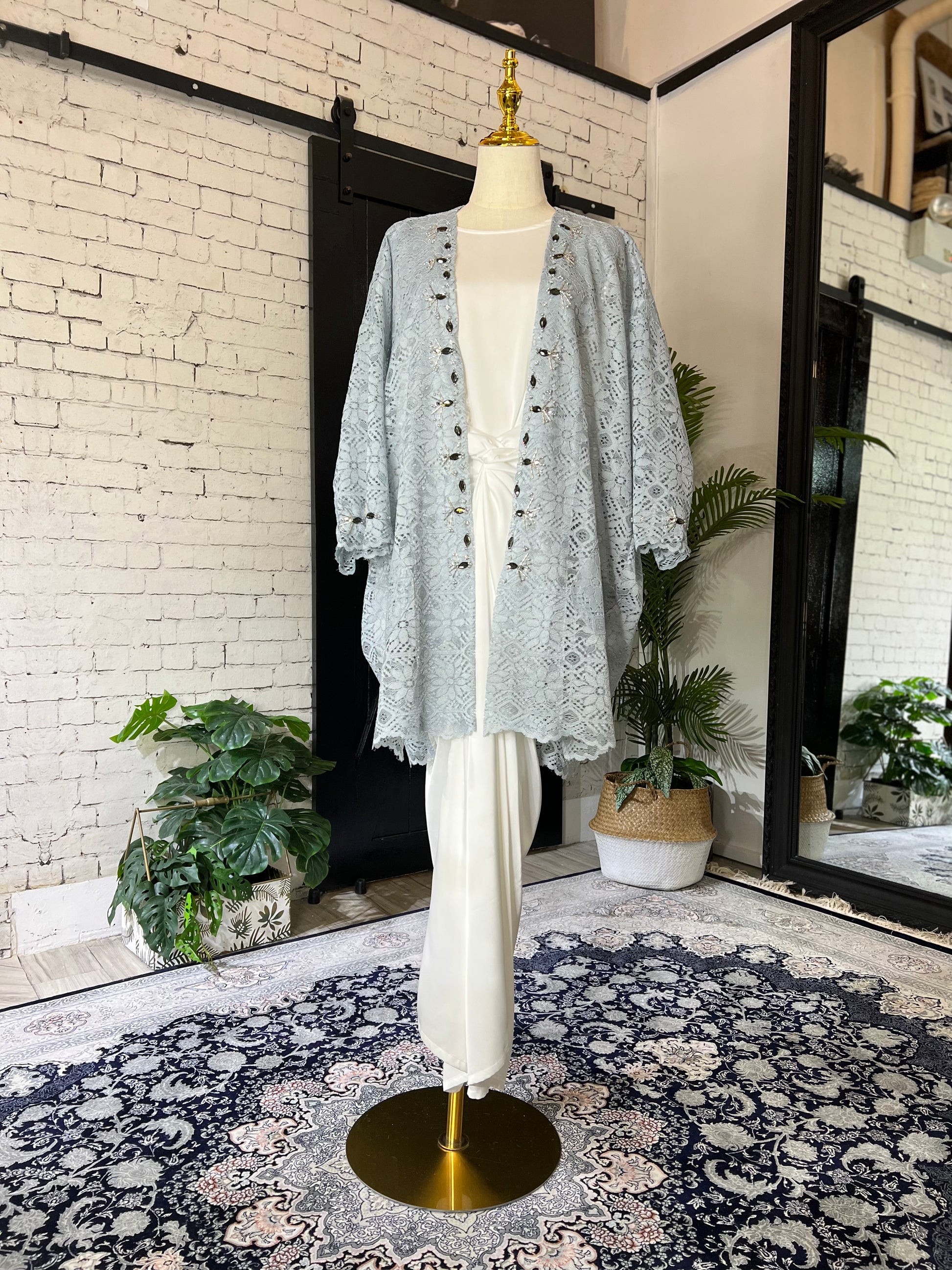 Make a statement with the Lavender Crocheted Lace Cardigan from FM by Fatimah Mohsin. This signature cardigan features delicate cotton lace fabric, making it both modest and stylish. It's the perfect addition to any wardrobe.
