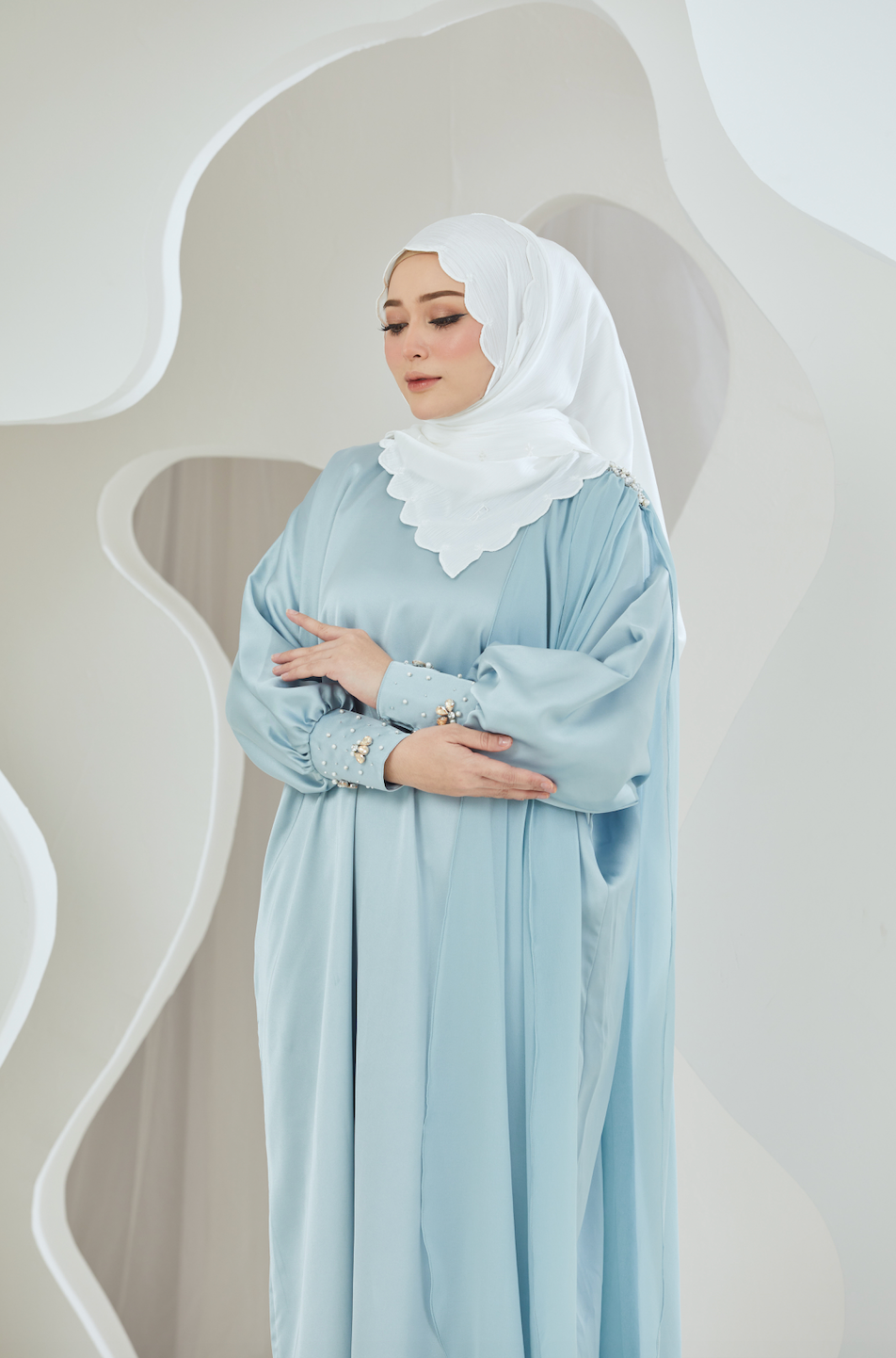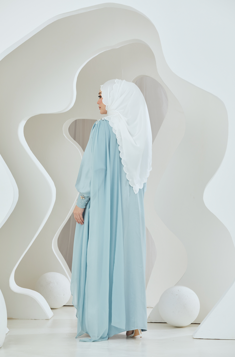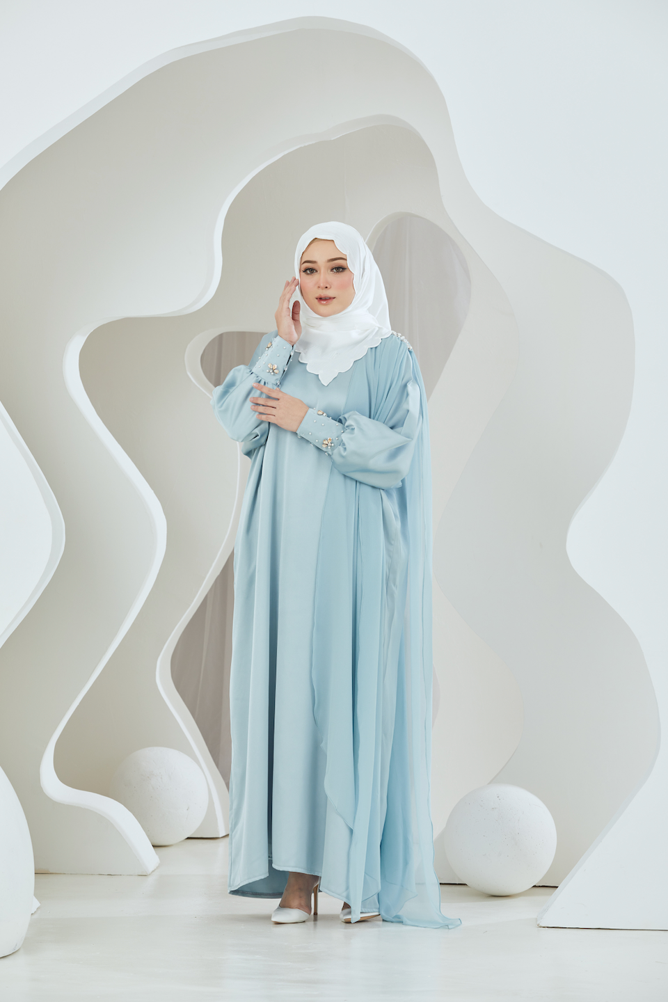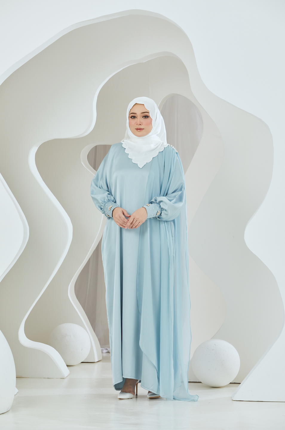 This Duchess Satin Abaya redefines luxury and elegance with its embellished sleeves and a delicate Chiffon Shoulder Sash. Crafted from sumptuous Duchess Satin, the abaya boasts a sleek and lustrous finish, offering an unparalleled touch of sophistication. The sleeves are meticulously adorned with intricate embellishments, adding a sparkle that catches the eye and enhances the garment's luxury appeal. A chiffon shoulder sash drapes elegantly, adding a fluid contrast to the satin's opulence and providing a graceful silhouette. Perfect for formal events, this abaya merges traditional modesty with contemporary elegance, making a statement in refined style.